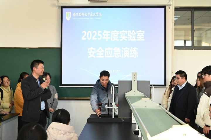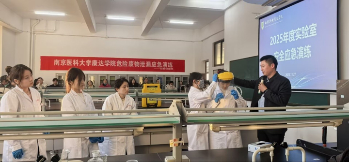11月27日下午,为切实提升师生实验室安全防范意识,强化应急处置能力,筑牢实验室环境安全防线,由后勤保障处主办、药学部承办的 “南京医科大学康达学院2025年实验室安全应急演练”在药学综合实训中心顺利开展。学部副主任李飞飞老师、综合办主任陈赛老师、各学系教师、实训中心老师和学生等参加本次活动。活动由后勤保障处处长王晓陆主持。